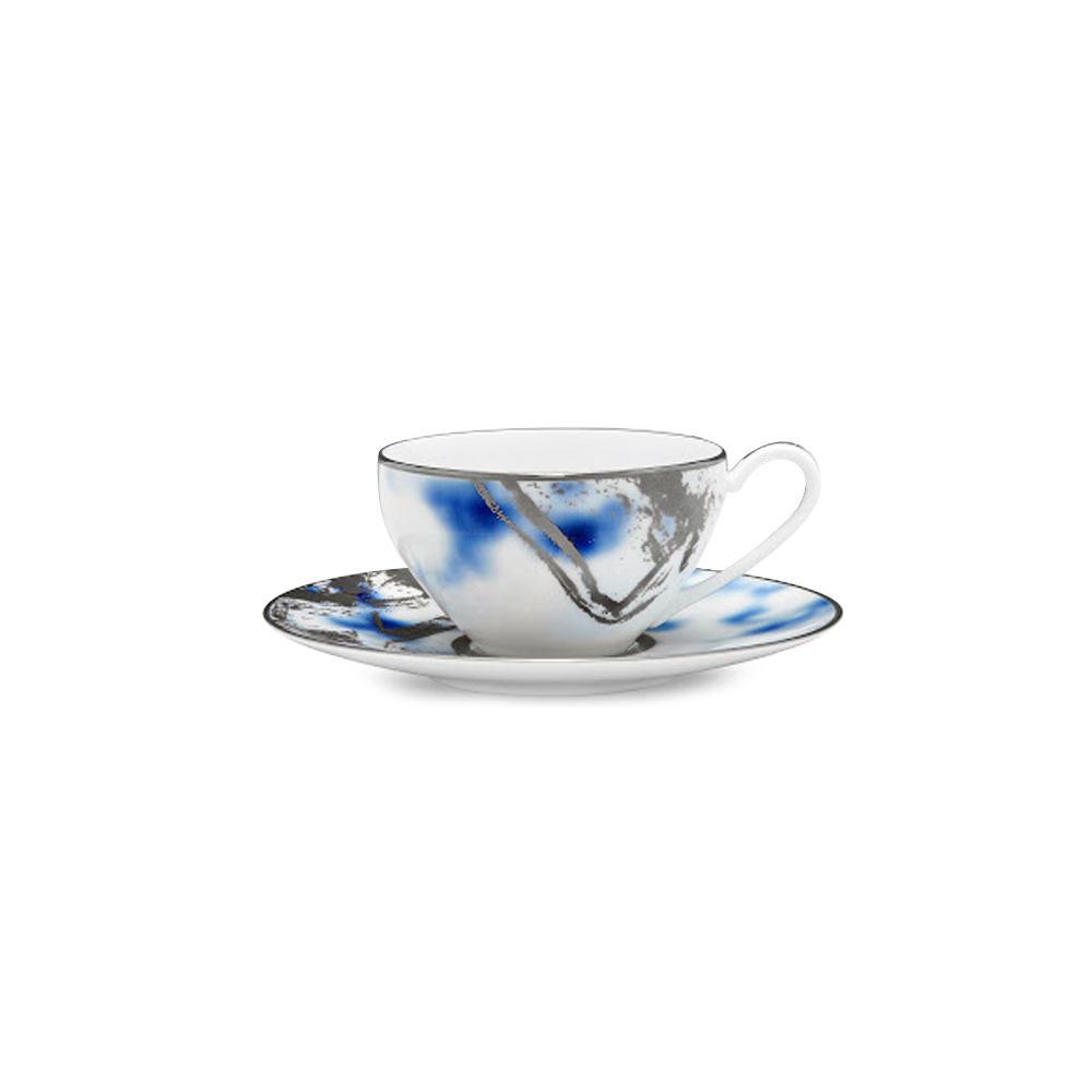 Jubilant Days Gold is an abstract celebration, featuring a base of random swatches of cobalt blue, and splashes of shimmering gold.